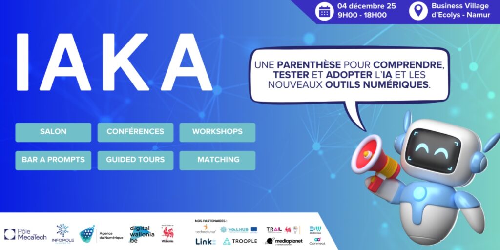 Le jeudi 4 décembre, rendez-vous au Business Village Ecolys (Namur) pour la 2ᵉ édition du salon IAKA, organisée par le Pôle MecaTech, Infopôle et l’Agence du Numérique.