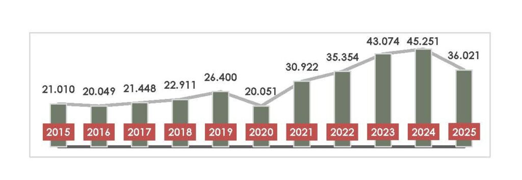 Evolution du nombre de visiteurs au 31/10/2025